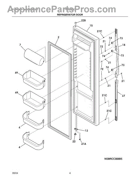 Replacement door bin for refrigerator interior storage. Installs on door to hold condiments and beverages. Replace if cracked, broken, or fallen off.