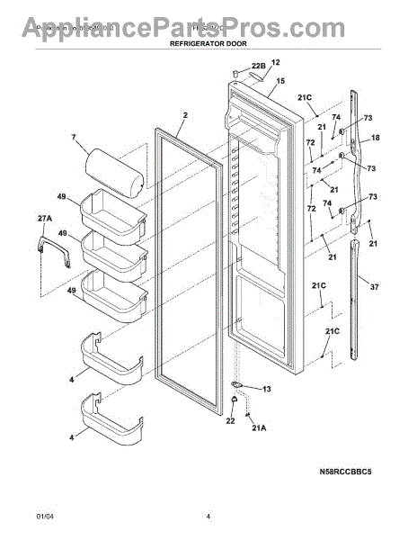 Parts for Frigidaire FRS26H7CB3: 05 - Refrigerator Door Parts
