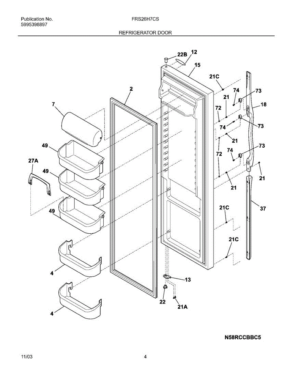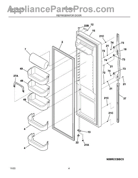 Causes of a bad door shelf bin can include frequent use, overloading with heavy items, or accidental impacts that can lead to cracks, breaks, or warping. A damaged shelf bin can result in items not being securely held in place and can decrease the overall storage efficiency of the refrigerator.