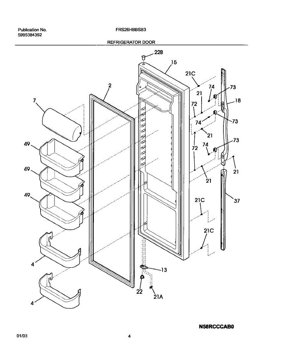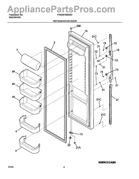 Replacement door bin for refrigerator interior storage. Installs on door to hold condiments and beverages. Replace if cracked, broken, or fallen off.