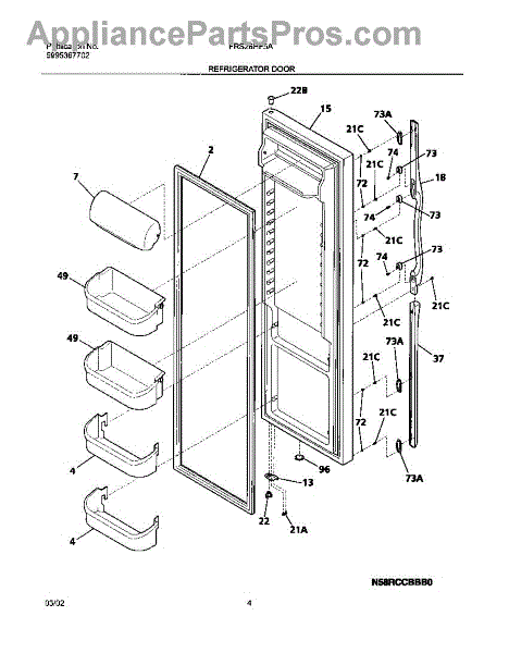 Parts for Frigidaire FRS26HF5AB2: 05 - Refrigerator Door Parts