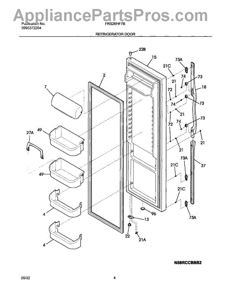 Causes of a bad door shelf bin can include frequent use, overloading with heavy items, or accidental impacts that can lead to cracks, breaks, or warping. A damaged shelf bin can result in items not being securely held in place and can decrease the overall storage efficiency of the refrigerator.