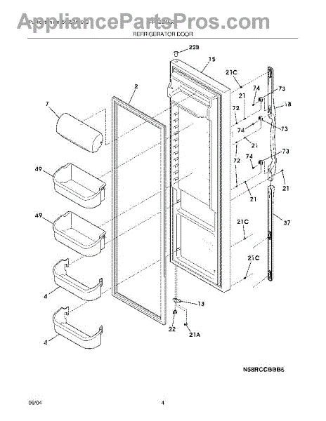 Replacement door bin for refrigerator interior storage. Installs on door to hold condiments and beverages. Replace if cracked, broken, or fallen off.