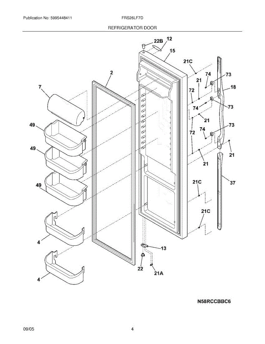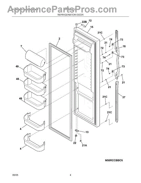 Replacement door bin for refrigerator interior storage. Installs on door to hold condiments and beverages. Replace if cracked, broken, or fallen off.
