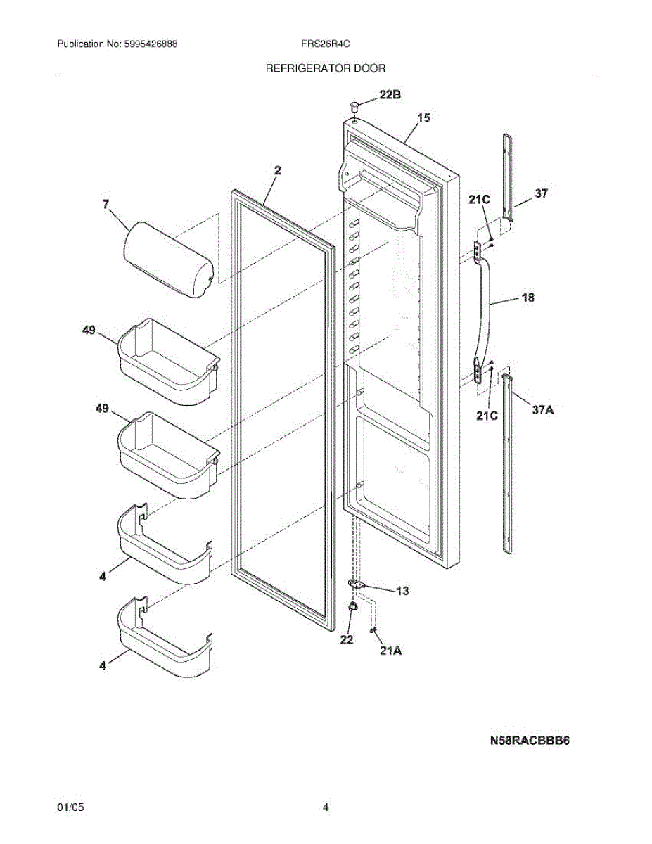 Replacement door bin for refrigerator interior storage. Installs on door to hold condiments and beverages. Replace if cracked, broken, or fallen off.