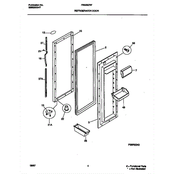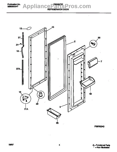 Secures door handle trim to the refrigerator door. Replace if broken, cracked, or missing after impact. Clips into door trim and attaches to door.