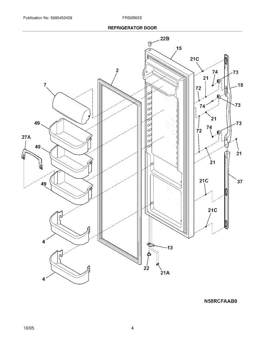 Causes of a bad door shelf bin can include frequent use, overloading with heavy items, or accidental impacts that can lead to cracks, breaks, or warping. A damaged shelf bin can result in items not being securely held in place and can decrease the overall storage efficiency of the refrigerator.