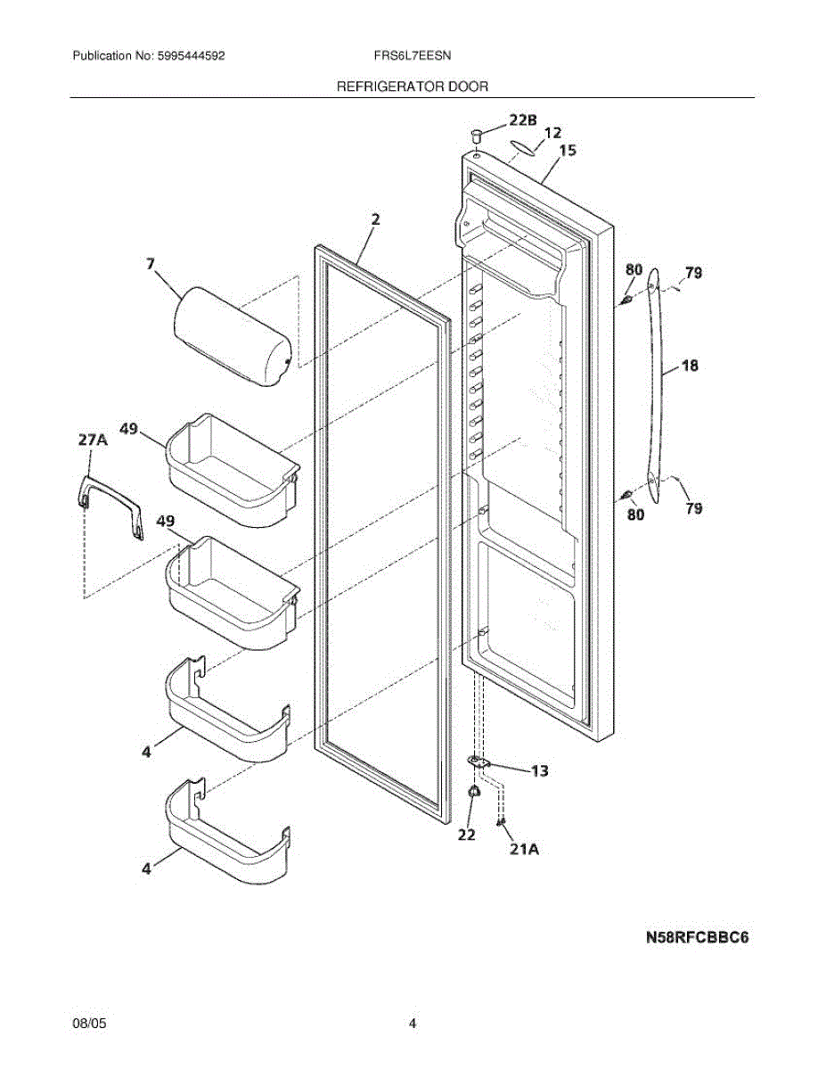 Parts for Frigidaire FRS6L7EESN: 05 - Refrigerator Door Parts
