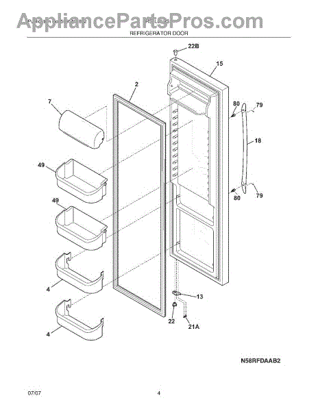 Door gasket seals refrigerator to keep cold air in and warm air out. Replace if torn, cracked, or not sealing properly. Confirm fit by model number.