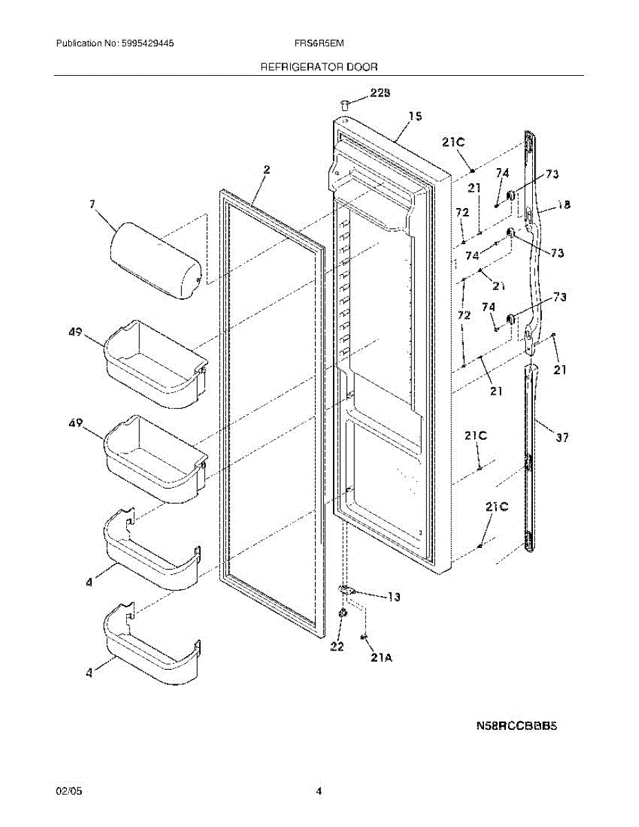 Replacement door bin for refrigerator interior storage. Installs on door to hold condiments and beverages. Replace if cracked, broken, or fallen off.