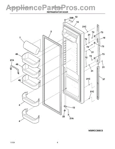 The Bottom Door Bin is an OEM replacement part for Frigidaire refrigerators. Measuring approximately 16 inches in length, 4 inches in height, and 5 inches in depth. This bottom door bin offers ample storage space for all your refrigerated items.