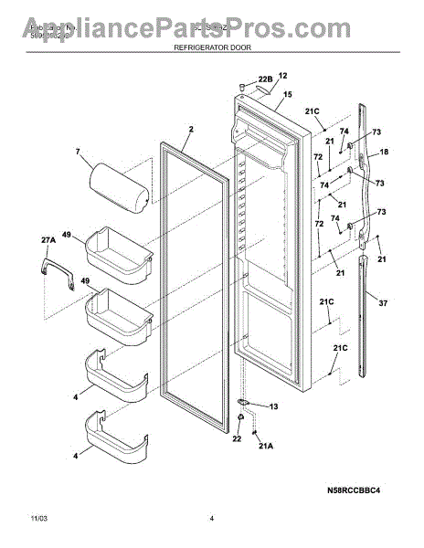 The Bottom Door Bin is an OEM replacement part for Frigidaire refrigerators. Measuring approximately 16 inches in length, 4 inches in height, and 5 inches in depth. This bottom door bin offers ample storage space for all your refrigerated items.