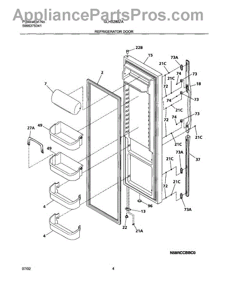 Parts for Frigidaire GLHS280ZAB4: 05 - Refrigerator Door Parts