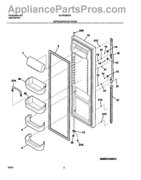 Causes of a bad door shelf bin can include frequent use, overloading with heavy items, or accidental impacts that can lead to cracks, breaks, or warping. A damaged shelf bin can result in items not being securely held in place and can decrease the overall storage efficiency of the refrigerator.
