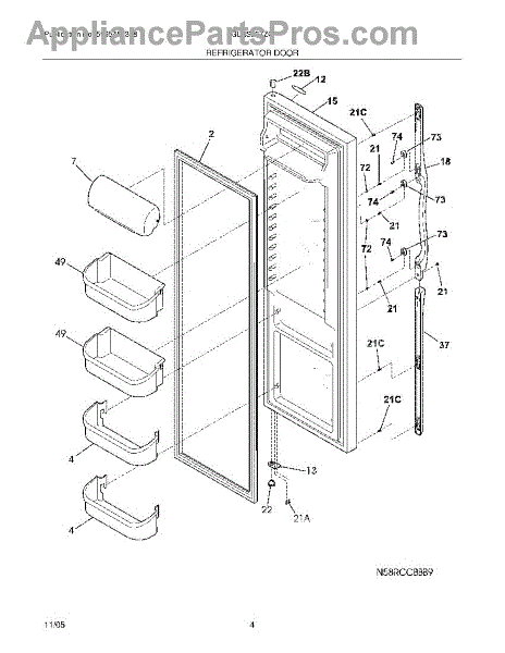 Parts for Frigidaire GLRS237ZCW7: 05 - Refrigerator Door Parts