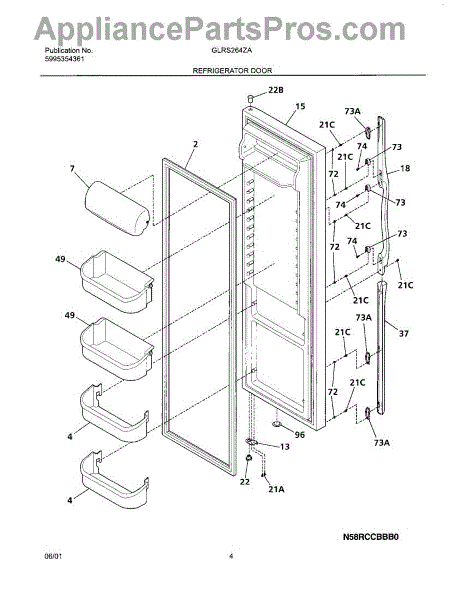 Parts for Frigidaire GLRS264ZAB1: 05 - Refrigerator Door Parts