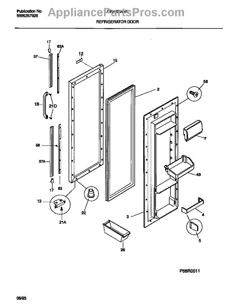 The Door Shelf Support is an OEM part for Frigidaire refrigerators, designed to hold and support the shelves on the inside of the refrigerator door. This part ensures that door shelves are securely mounted, providing stable storage for bottles, condiments, and other items.