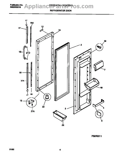The Door Shelf Support is an OEM part for Frigidaire refrigerators, designed to hold and support the shelves on the inside of the refrigerator door. This part ensures that door shelves are securely mounted, providing stable storage for bottles, condiments, and other items.