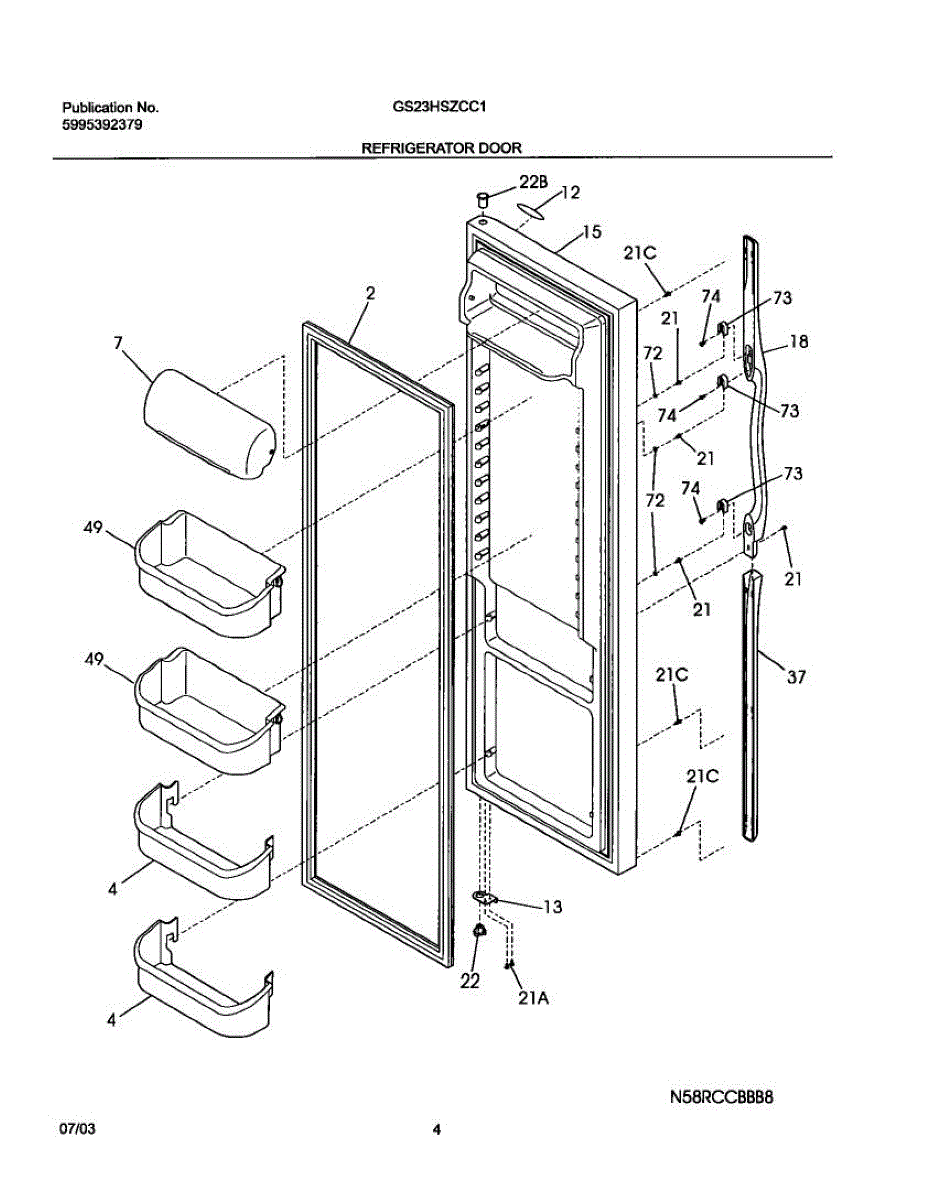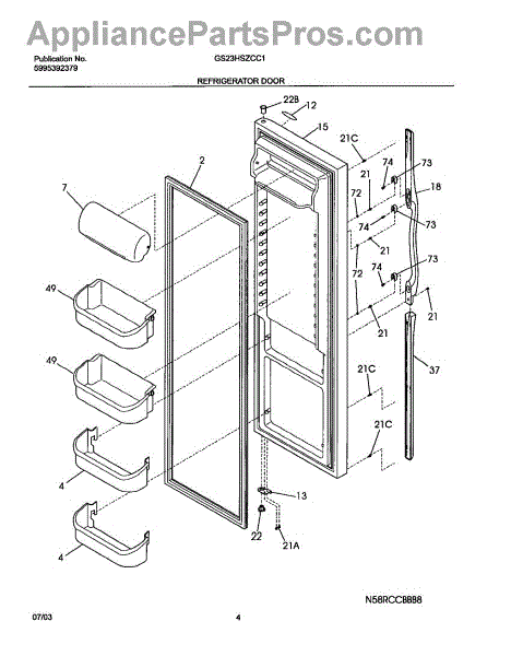 The Door Shelf Bin is an OEM part for Frigidaire refrigerators. It serves as a storage space attached to the inner door panel, providing convenient access to frequently used items such as drinks, condiments, and snacks.