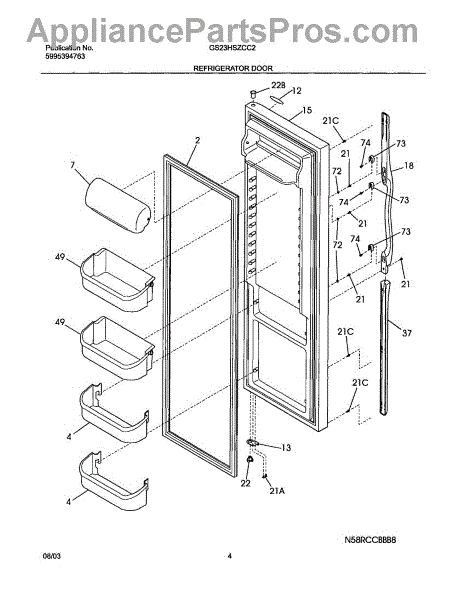 The Door Shelf Bin is an OEM part for Frigidaire refrigerators. It serves as a storage space attached to the inner door panel, providing convenient access to frequently used items such as drinks, condiments, and snacks.