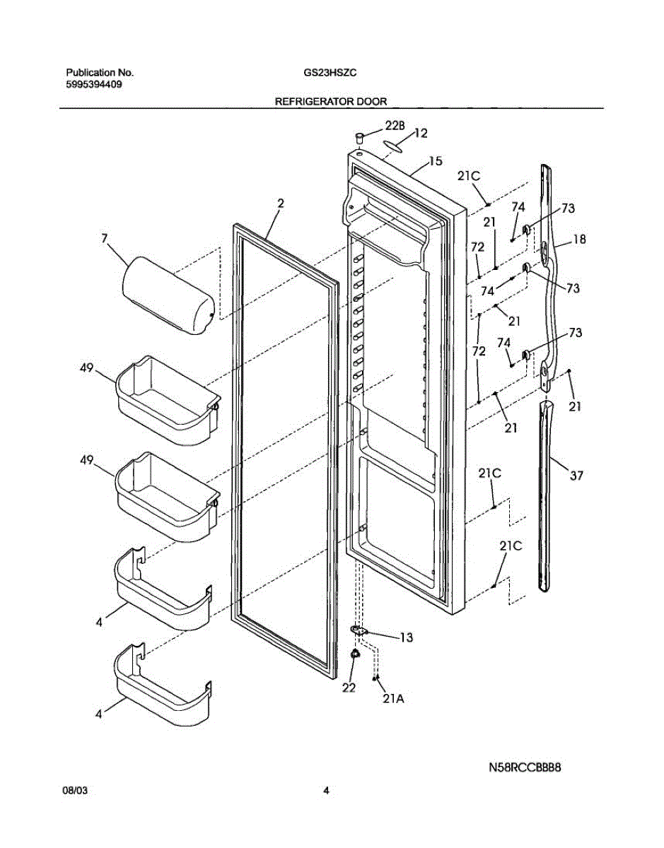 Replacement door bin for refrigerator inner door panel storage. Needed when original bin is cracked, broken, or missing. Slides into place on door.