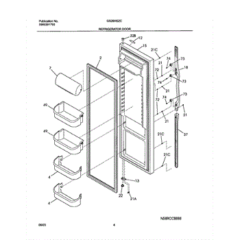 White outer door panel for refrigerator. Replaces cracked, dented, or discolored exterior door surface. Complete assembly installs on front of door.