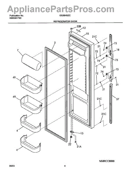 Replace your cracked, broken, or missing refrigerator bottom door bin. Snaps into door grooves without tools. Clear storage for gallon containers.