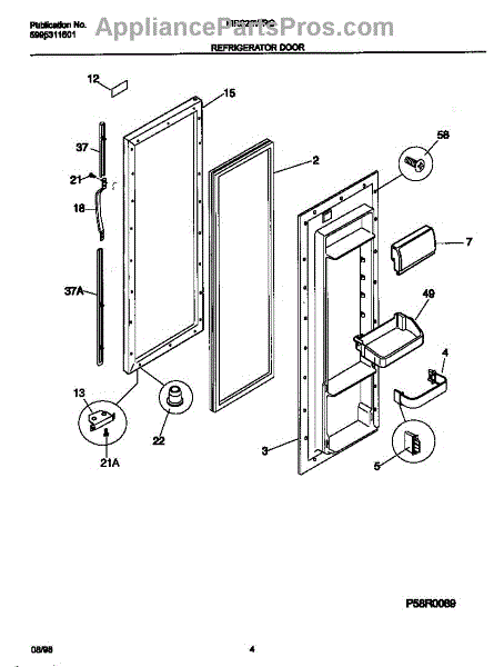 The Door Shelf Support is an OEM part for Frigidaire refrigerators, designed to hold and support the shelves on the inside of the refrigerator door. This part ensures that door shelves are securely mounted, providing stable storage for bottles, condiments, and other items.