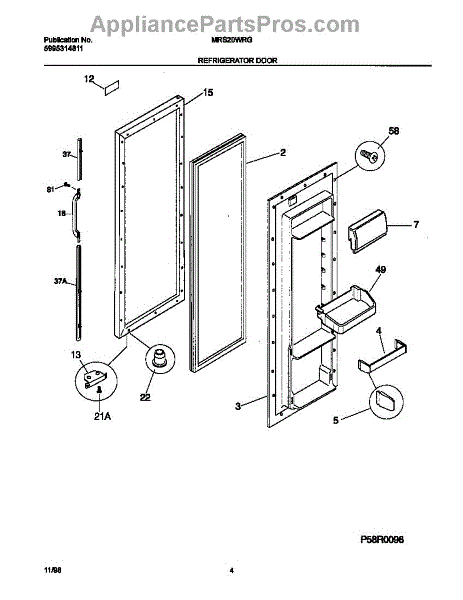 The Door Shelf Support is an OEM part for Frigidaire refrigerators, designed to hold and support the shelves on the inside of the refrigerator door. This part ensures that door shelves are securely mounted, providing stable storage for bottles, condiments, and other items.