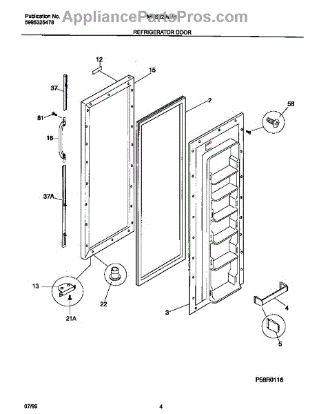 The Door Shelf Support is an OEM part for Frigidaire refrigerators, designed to hold and support the shelves on the inside of the refrigerator door. This part ensures that door shelves are securely mounted, providing stable storage for bottles, condiments, and other items.