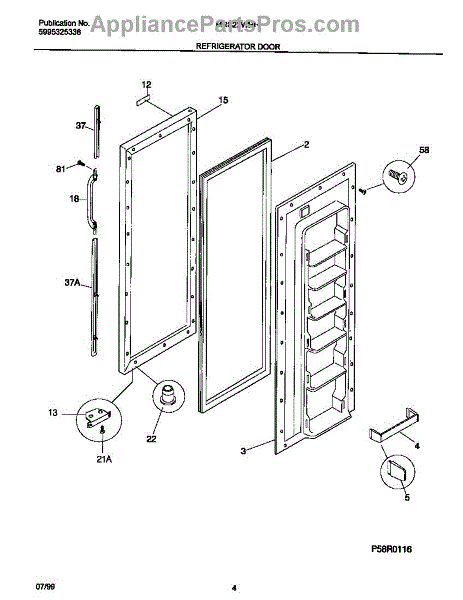 The Door Shelf Support is an OEM part for Frigidaire refrigerators, designed to hold and support the shelves on the inside of the refrigerator door. This part ensures that door shelves are securely mounted, providing stable storage for bottles, condiments, and other items.