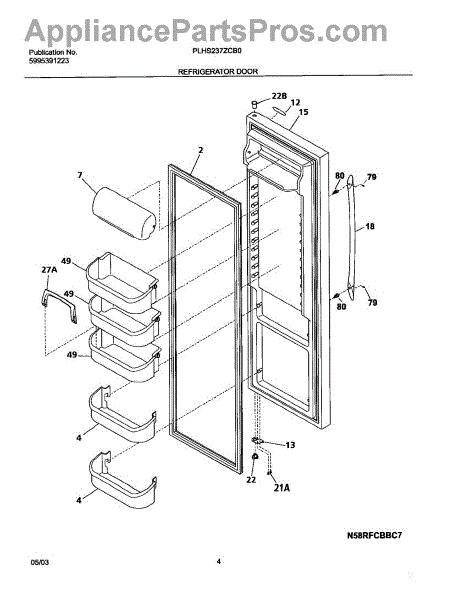 The Door Shelf Bin is an OEM part for Frigidaire refrigerators. It serves as a storage space attached to the inner door panel, providing convenient access to frequently used items such as drinks, condiments, and snacks.