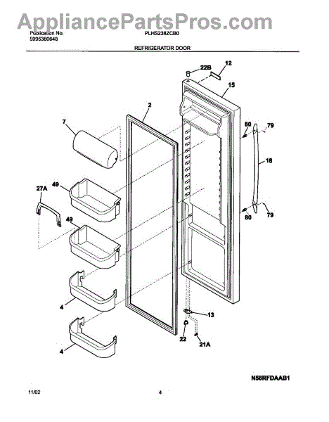 The Door Shelf Bin is an OEM part for Frigidaire refrigerators. It serves as a storage space attached to the inner door panel, providing convenient access to frequently used items such as drinks, condiments, and snacks.