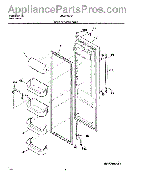 Causes of a bad door shelf bin can include frequent use, overloading with heavy items, or accidental impacts that can lead to cracks, breaks, or warping. A damaged shelf bin can result in items not being securely held in place and can decrease the overall storage efficiency of the refrigerator.