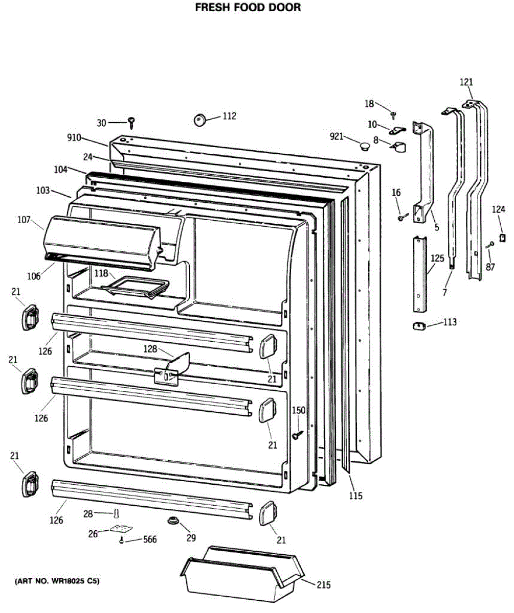Seals your refrigerator's fresh food door to maintain temperature and prevent air leaks. Replace if you notice condensation, mold, or warm spots inside.