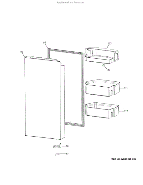 Parts for Ge CXE22DM5PDS5: Refrigerator Door - Rh Parts