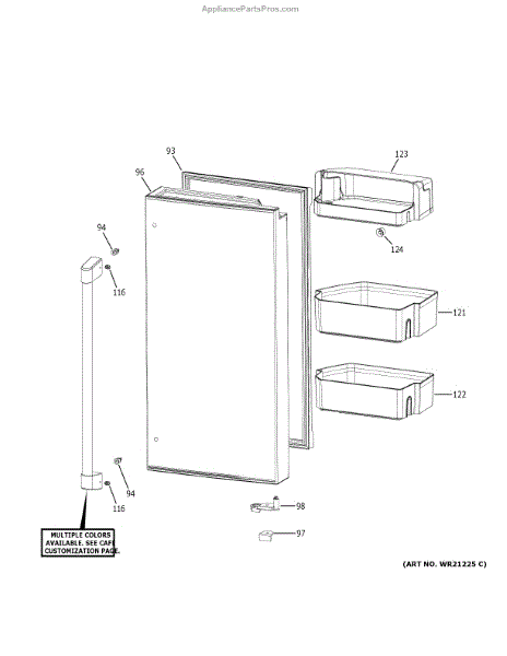 This tinted lower right door bin replaces the lower-right storage shelf on the refrigerator door to restore secure storage and a finished interior look. It's a direct-fit replacement for the OEM lower-right door shelf. What it does