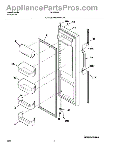 The Door Hinge Bearing is an OEM part for Frigidaire refrigerators. It supports the refrigerator door, allowing it to open and close smoothly. This bearing ensures that the door remains properly aligned and operates without excessive friction, contributing to the overall longevity and functionality of the refrigerator.