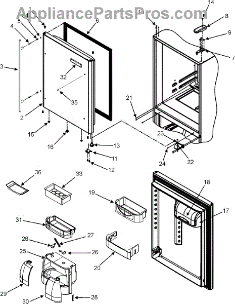 The Door Closure is an OEM replacement part for Whirlpool refrigerators. It is a small component that the door rides on that allows it to open and close properly. Causes of impaired operation involve age-related spring coil fatigue, dislodged or cracked plastic housing pieces, or confined door alignment stripping closure grooves. Symptoms of a faulty closure include: