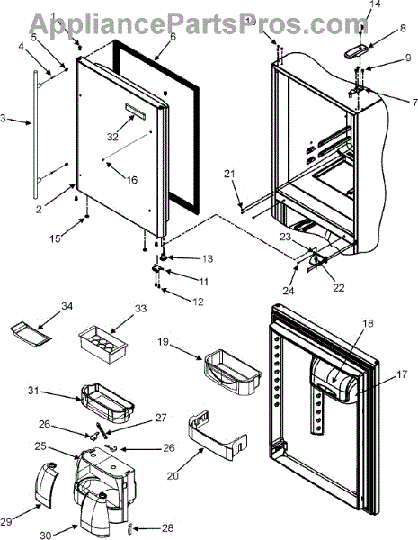 The Door Closure is an OEM replacement part for Whirlpool refrigerators. It is a small component that the door rides on that allows it to open and close properly. Causes of impaired operation involve age-related spring coil fatigue, dislodged or cracked plastic housing pieces, or confined door alignment stripping closure grooves. Symptoms of a faulty closure include: