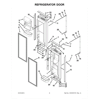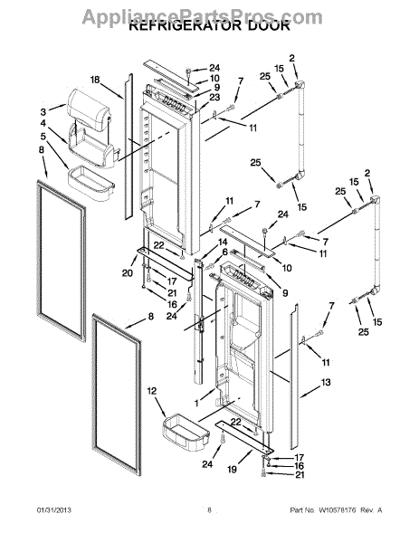 The Door Closure is an OEM replacement part for Whirlpool refrigerators. It is a small component that the door rides on that allows it to open and close properly. Causes of impaired operation involve age-related spring coil fatigue, dislodged or cracked plastic housing pieces, or confined door alignment stripping closure grooves. Symptoms of a faulty closure include: