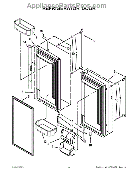 The Door Bin is an OEM replacement part for Whirlpool refrigerators. Mounted on the refrigerator doors, bins conveniently organize stored items. Causes of replacement consist of excess weight occasionally placed in bins can bow or warp tray structures over extended use as well. Symptoms involve: