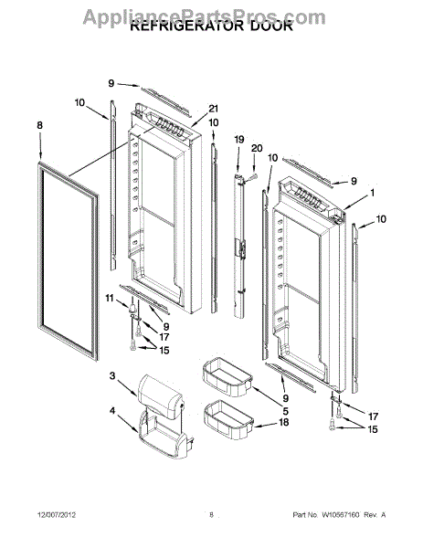 The Door Bin is an OEM replacement part for Whirlpool refrigerators. Mounted on the refrigerator doors, bins conveniently organize stored items. Causes of replacement consist of excess weight occasionally placed in bins can bow or warp tray structures over extended use as well. Symptoms involve: