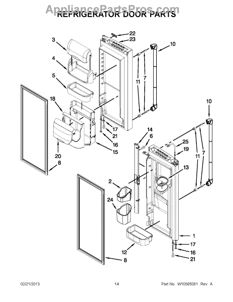 The Door Gasket is an OEM replacement part for Whirlpool side-by-side refrigerators. This black gasket provides a critical moisture and air seal around the refrigerator and freezer door openings. Causes of failure may involve cracking or degradation from mechanical stresses or chemical exposure over years of use. Temperature fluctuations can also damage sealing integrity. Symptoms of a defective door gasket include: