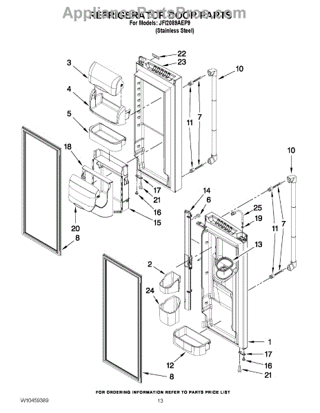 The Door Gasket is an OEM replacement part for Whirlpool side-by-side refrigerators. This black gasket provides a critical moisture and air seal around the refrigerator and freezer door openings. Causes of failure may involve cracking or degradation from mechanical stresses or chemical exposure over years of use. Temperature fluctuations can also damage sealing integrity. Symptoms of a defective door gasket include: