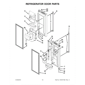The Door Gasket is an OEM replacement part for Whirlpool side-by-side refrigerators. This black gasket provides a critical moisture and air seal around the refrigerator and freezer door openings. Causes of failure may involve cracking or degradation from mechanical stresses or chemical exposure over years of use. Temperature fluctuations can also damage sealing integrity. Symptoms of a defective door gasket include: