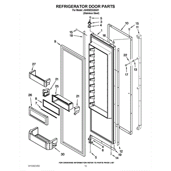 The Dairy Bin is an OEM replacement part for Whirlpool's built-in and integrated refrigerator side-by-side door shelves. It provides a designated space optimized for storing dairy products.