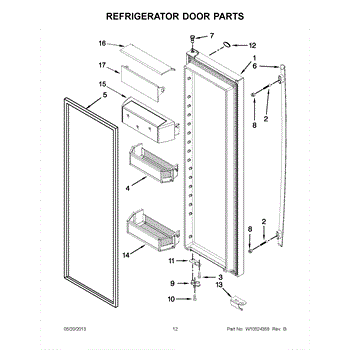 The Door Closure Cam is an OEM replacement part for Whirlpool refrigerators. It is a small lever located inside refrigerator doors that engages the latch bolt when closing. The closure cam ensures doors are securely fastened shut to maintain optimal cooling temperatures. Causes of a bad closure cam can include worn or loose mounting points preventing engagement, cracked or broken lever components, or door latch mechanisms that inhibit full closure. Symptoms of a bad door closure cam include: