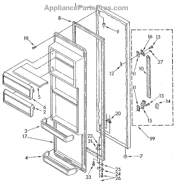 The Door Closer Kit is an OEM part for Whirlpool refrigerators. This kit contains essential components for smooth refrigerator door closing: door cams and screws ensure gentle closure, proper seal, and prevent cool air leakage.