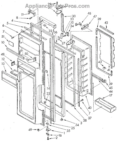 This screw is used to secure the handle end cap to the center of the door. The screw size measures 8-18 x 1/2 inches.